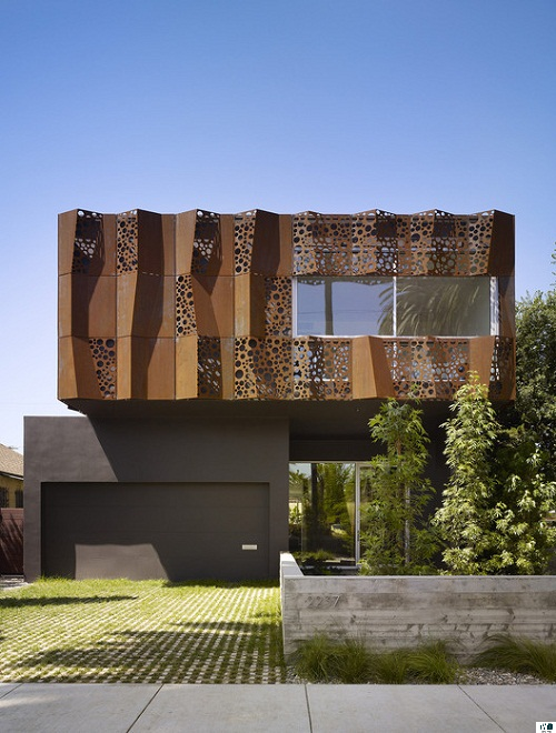 Từ các kiến trúc sư. Các sản phẩm nội thất từ gỗ óc chó được thiết kế vô cùng công phu tại Venice, Califonia - địa điểm nổi tiếng bên bờ biển đặc trưng bởi những căn biệt thự độc đáo. Trong mẫu thiết kế nhà hiện đại dựa trên ý tưởng gỗ góc chó, căn biệt thự là kết quả của sự pha trộn giữa kiến trúc độc đáo giữa con nhân tố con người và thiên nhiên. Thể hiện mối quan hệ chặt chẽ giữa các khối hình vuông vắn của căn biệt thự được kết hợp hài hòa với khối cảnh thiên nhiên bao quanh. Bên cạnh đó là vật liệu kính ấn tượng thay thế cửa gỗ truyền thống đã tạo nên nguồn ánh sáng tự nhiên dồi dào cho căn phòng. Nhưng bên cạnh đó là nhược điểm bởi giới hạn diện tích căn hộ khi lựa chọn có hay không nên tăng diện tích thiết kế căn nhà bằng cách loại bỏ cây thông hoặc để cây thông và giới hạn diện tích nhà.