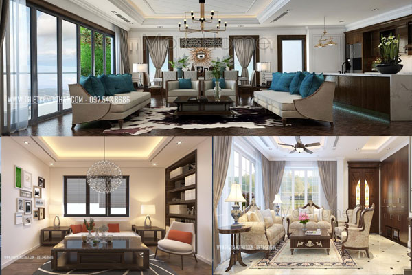 Mẫu thiết kế đầu tiên mà Morehome muốn gửi đến các bạn là mẫu phòng khách đang được các gia chủ yêu thích và đánh giá cao hiện nay. Không gian phòng khách thật lộng lẫy với bộ sofa gỗ óc chó nổi bật lên phong cách lịch lãm giữa không gian đèn chùm tân cổ điển, rèm cửa quyến rũ, tranh treo tường, bộ bàn ghế ăn gỗ óc chó liền kề và những chi tiết trang trí đẹp mắt khác. Khơi nguồn từ xu hướng tân cổ điển, các KTS đã thổi hồn cho từng phân cảnh của gian phòng thêm phần độc đáo, tinh tế và khác biêt.