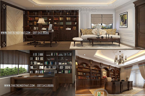 Dưới đây sẽ là gợi ý cho bạn một số mẫu thiết kế nội thất gỗ óc chó cho phòng làm việc phong cách tân cổ điển thêm đẳng cấp và hiệu quả.