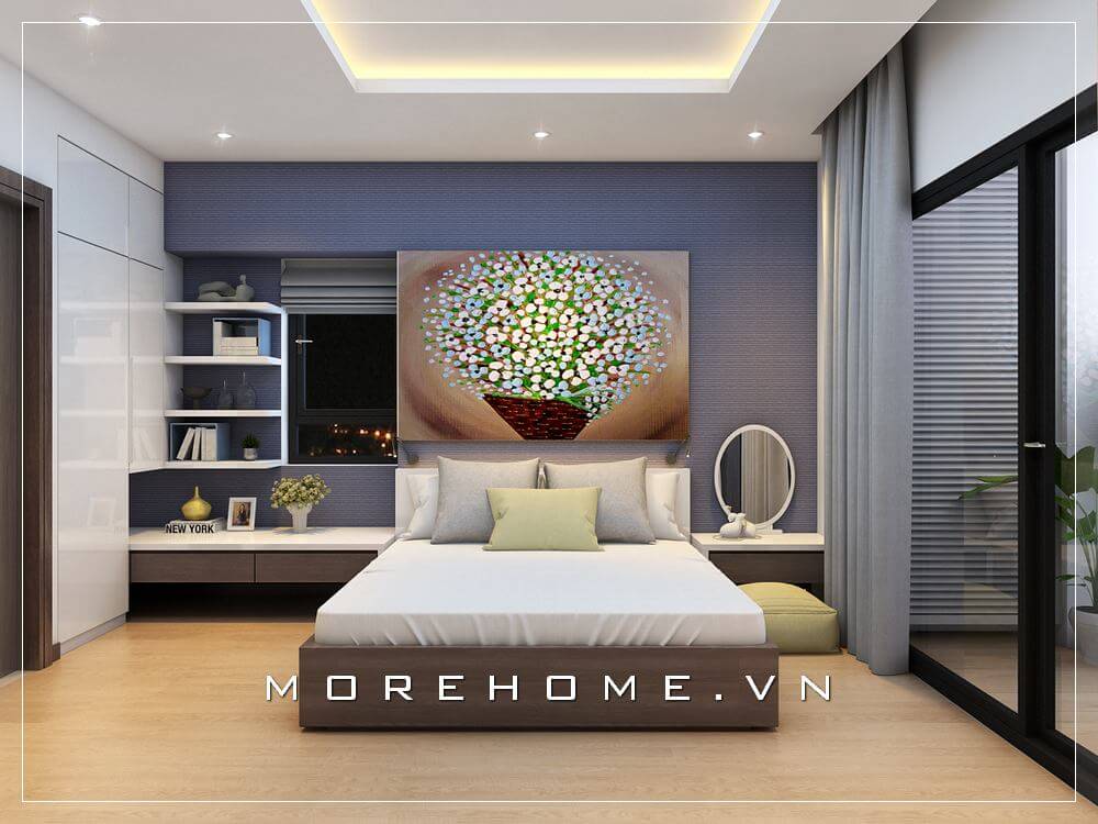 Thiết kế phòng ngủ chung cư đầy ấn tượng, không gian phòng ngủ này luôn tạo cảm giác tươi mới và sinh động nhờ vào cách bố trí khoa học cũng như ánh sáng tự nhiên từ bên ngoài vào
