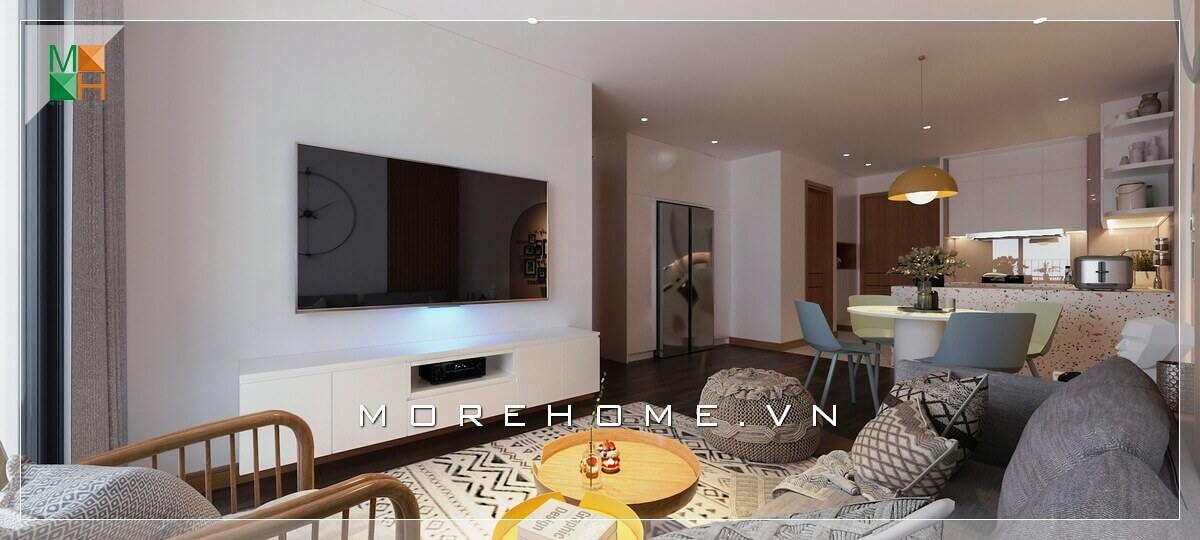 Morehome gợi ý cho bạn mẫu thiết kế nội thất phòng khách chung cư, nhà phố tiện nghi và sang trọng mang phong cách tân cổ điển.
