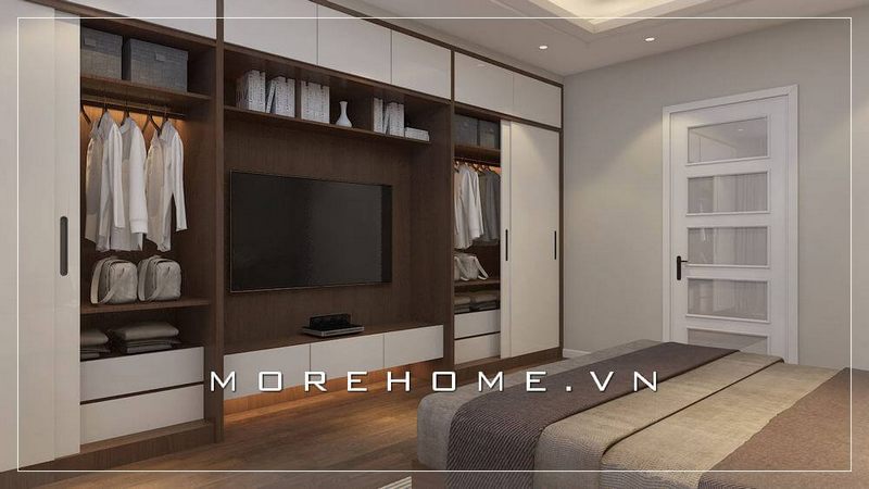 Ngoài ra, thiết kế tủ quần áo mới nhất cũng mang lại sự sang trọng và xinh đẹp cho phòng ngủ. Bạn có thể tự do lựa chọn vật liệu và màu sắc để phù hợp với phong cách riêng của bạn. Các khoang để treo quần áo được xây dựnghài hoặc dàn trệt, tận dụng sự linh hoạt để lưu trữ nhiều hơn trong không gian hạn chế. Không chỉ là nơi giữ quần áo mà tủ thông minh còn trở thành một điểm nhấn thẩm mỹ tuyệt vời cho căn phòng của bạn.